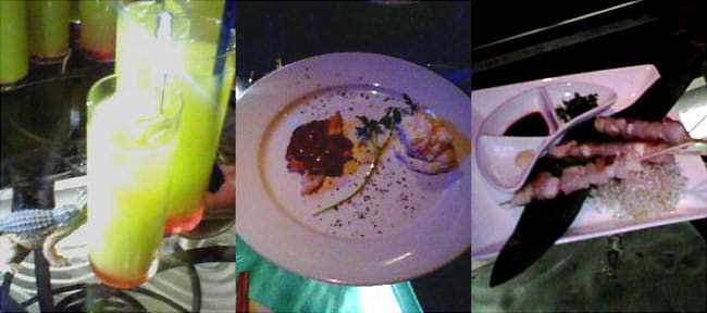 左:ドフ鰐カクテル(主催のマヨさんが特別注文してくださいました)底で圧倒的に尻に敷かれてるピンクがすごく…ドフラです…。甘くて美味しかったです。